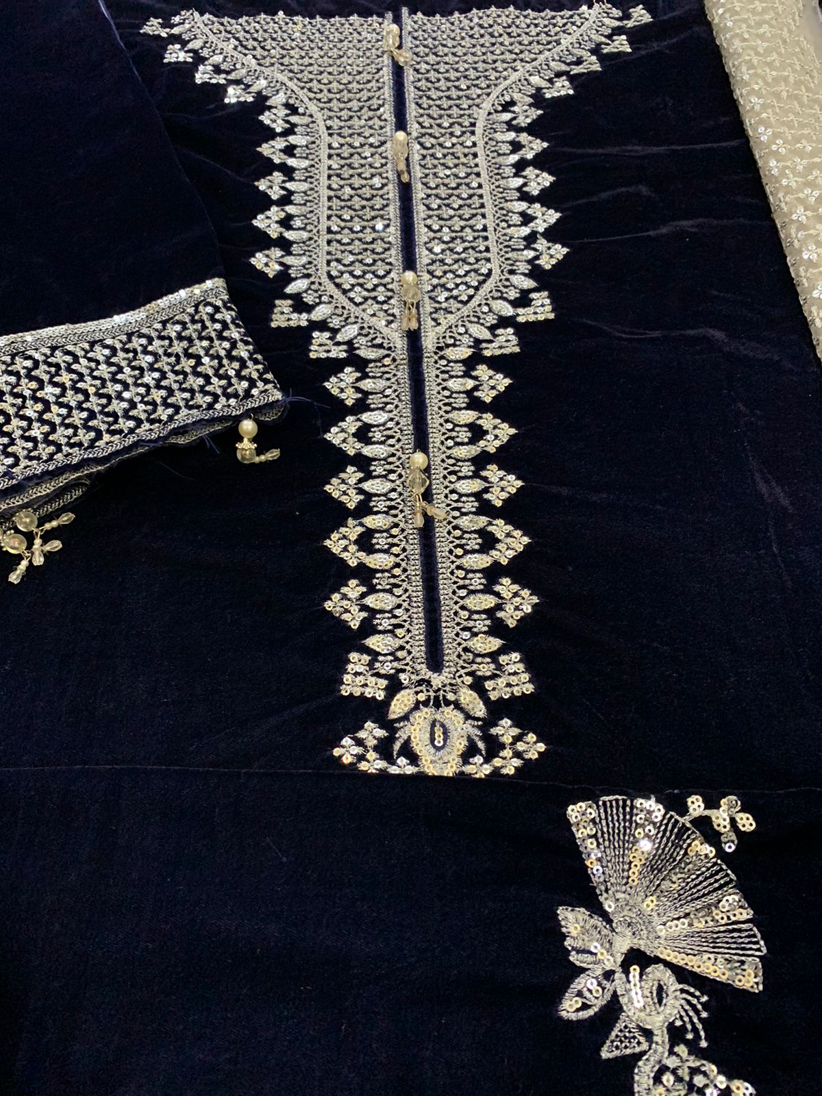 Heavy Embroided velvet front with hanging lattkans on neck