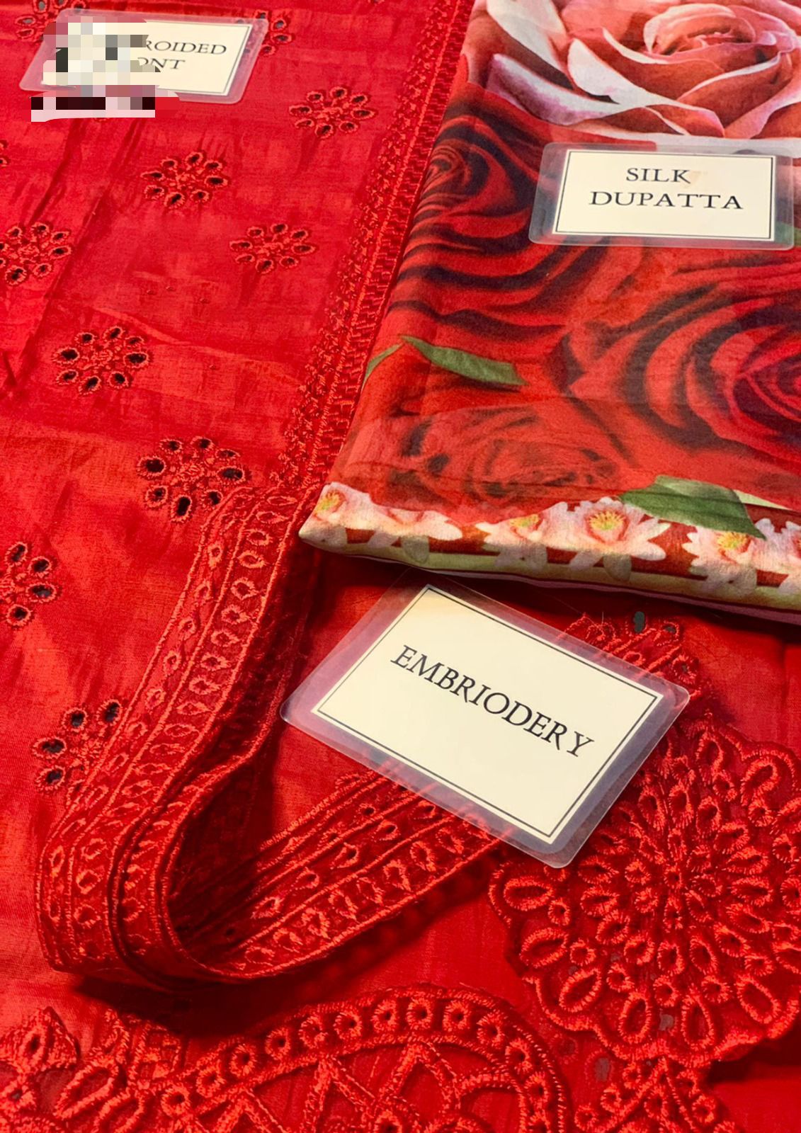 Cotton fully heavy embroidered scifflie front with heavy embroidered neckline with heavy embroidered daman boarder with chak embroidered patti