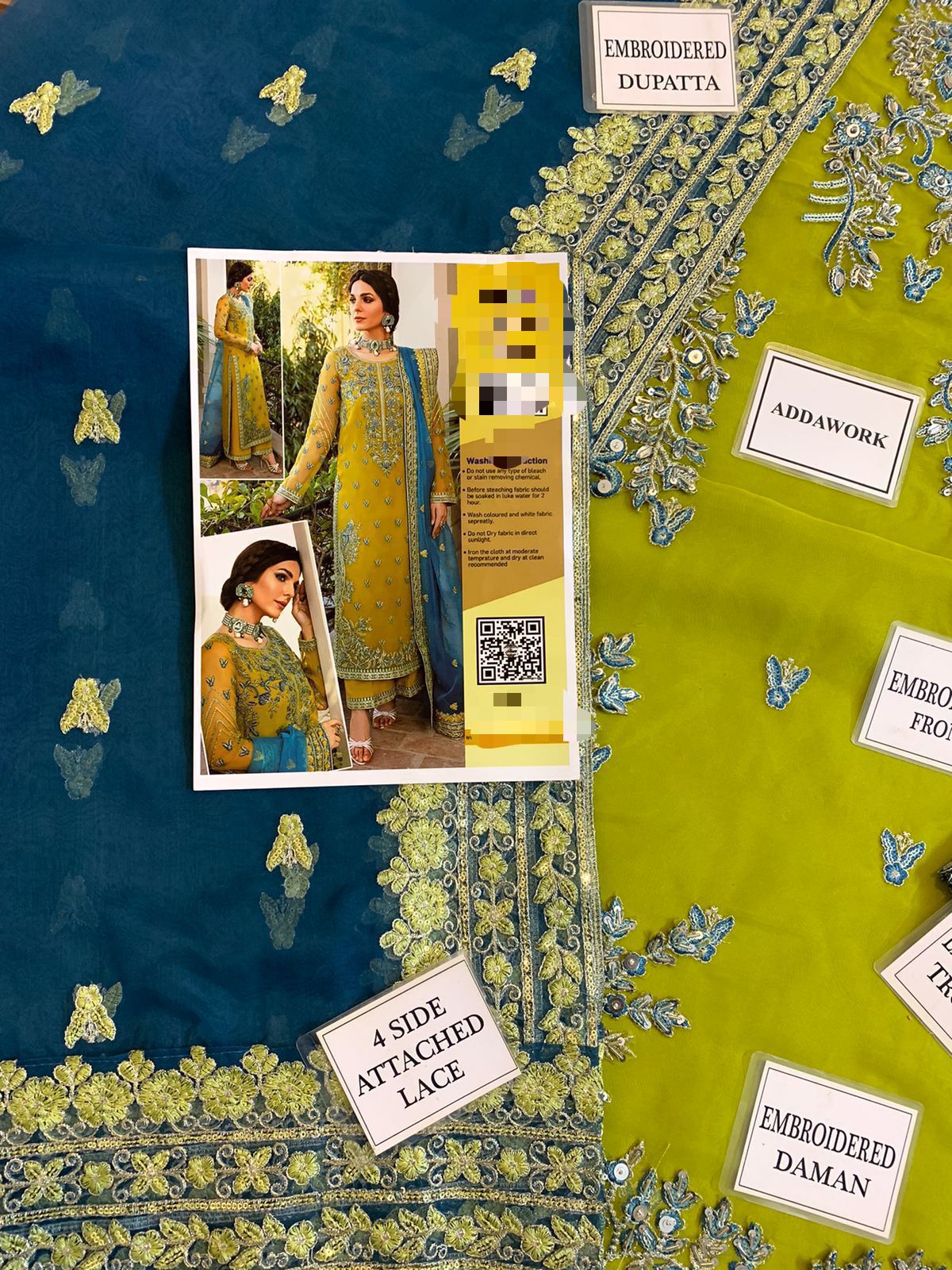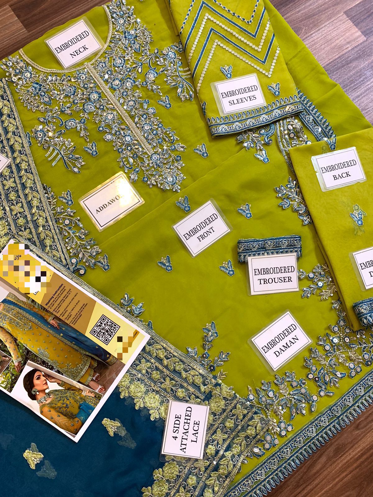 * NECK: Embroidered Motif On Fabric with Heavily Adda work & 2 Chak Embroidered Motif