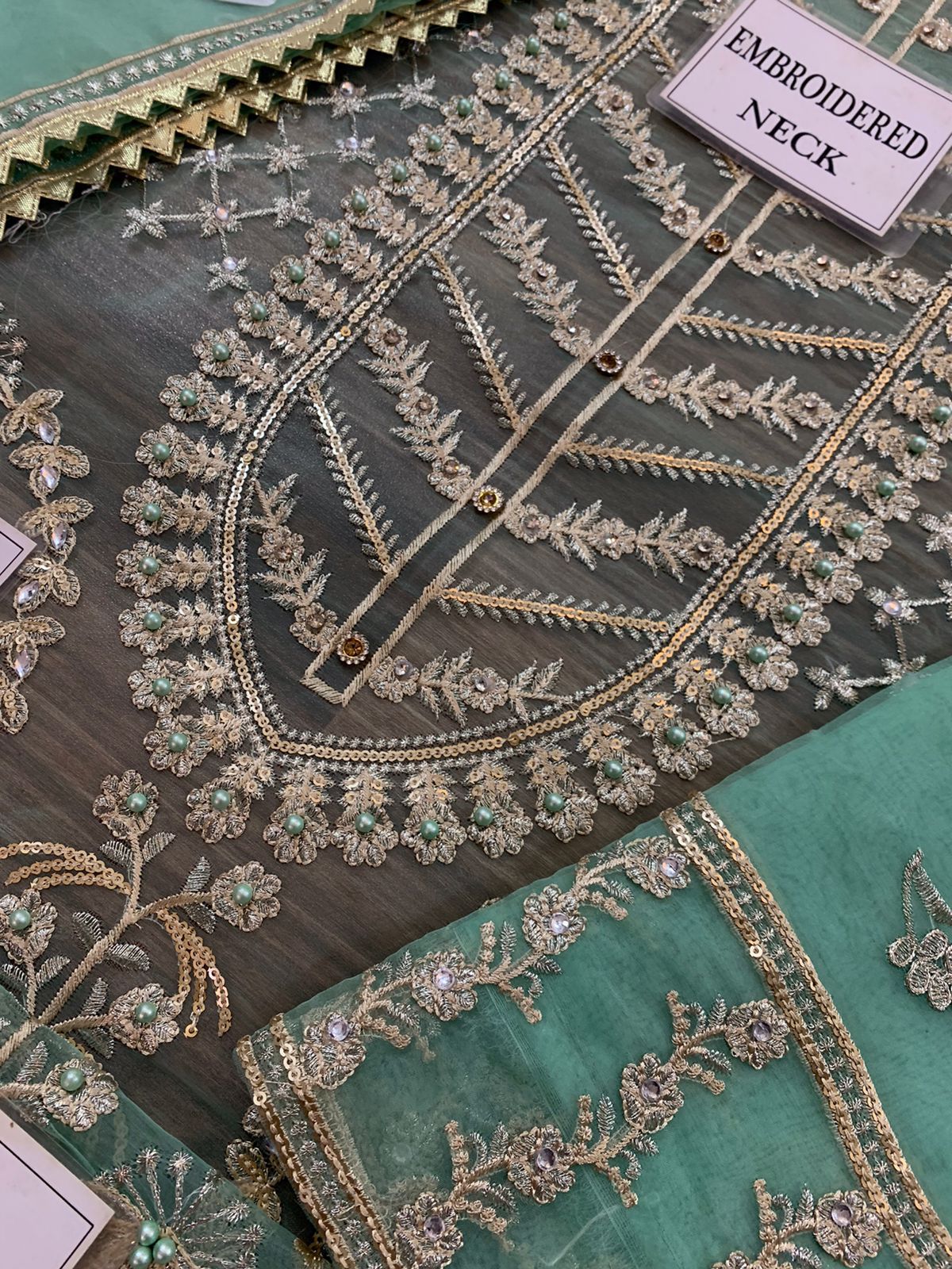 ORGANZA fully heavy embroidered SLEEVES with heavy embroidered SLEEVES BORDER